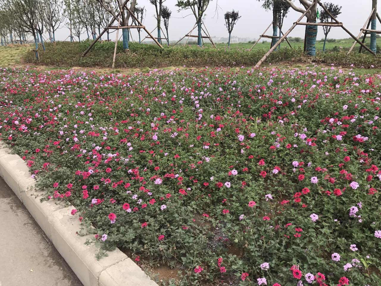 上午10時(shí)許,夏至?xí)r節(jié)的陽(yáng)光有點(diǎn)灼熱,空氣中彌漫著鮮花的清香,兩臺(tái)20t的水車(chē)正來(lái)回澆水,峪山收費(fèi)站外的中分帶剛栽植的大葉女貞樁景蒼勁挺拔;造型優(yōu)美的大規(guī)格樸樹(shù)、三角楓、香樟、欒樹(shù)、廣玉蘭似哨兵把守在地勢(shì)開(kāi)闊、連綿起伏的基礎(chǔ)綠帶兩側(cè);形態(tài)各異的高品質(zhì)桂花、櫻花、紅楓、紅葉李、壽星桃等或點(diǎn)綴、或組團(tuán)、或矩陣式栽植在寬闊的中分帶上。美麗的格桑花、重瓣美女櫻、德國(guó)鳶尾和月季競(jìng)相開(kāi)放。
