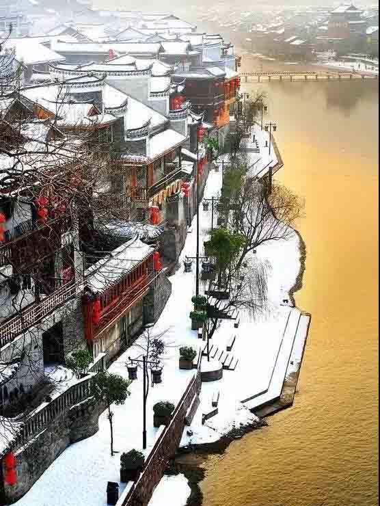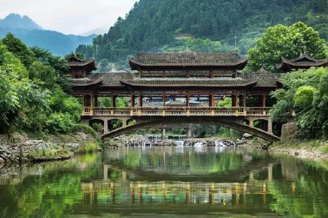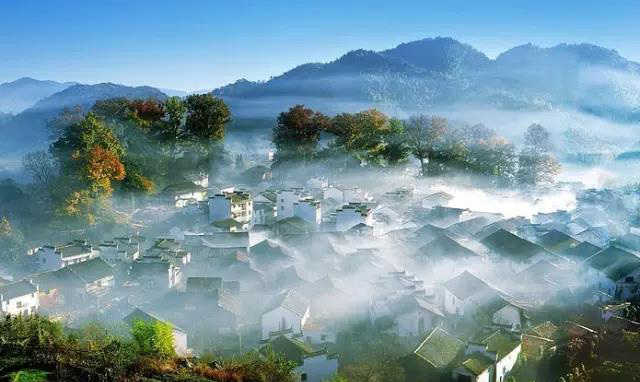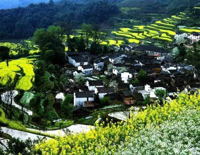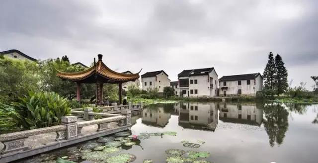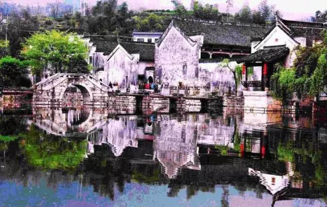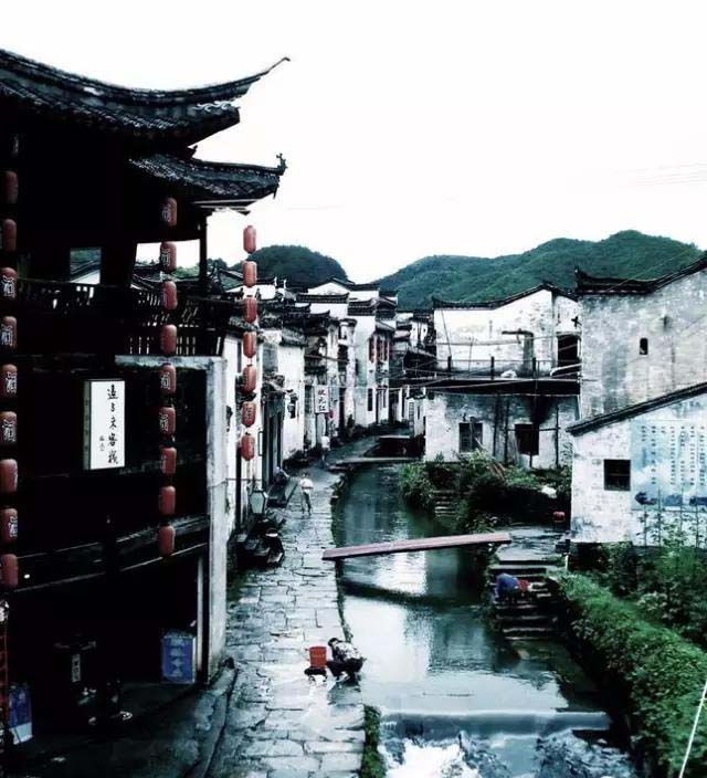 灰瓦白墻和高大的門樓,門樓墻壁有精致的雕花,屋頂?shù)牡窕ǜ鼮榫旅利悾麄€建筑里有一套貫通的水系,再加上綠樹成陰、群山呼應(yīng),讓你有種置身仙境感。